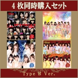 ~チームサプライズ~ 板野友美、大島優子、柏木由紀、北原里英、小嶋陽菜、指原莉乃、篠田麻里子、島崎遥香、高城亜樹、高橋みなみ、松井玲奈、峯岸みなみ、 渡辺麻友、渡辺美優紀、山本彩、横山由依 【バラの儀式公演 4枚同時購入内容】 M13 『美しい狩り』 Type B Ver. CD+DVD / 生写真(3枚ランダム封入) M14 『哲学の森』 Type B Ver. CD+DVD / 生写真(3枚ランダム封入) M15 『愛の川』 Type B Ver. CD+DVD / 生写真(3枚ランダム封入) M16 『ほっぺ、ツネル』 Type B Ver. CD+DVD / 生写真(3枚ランダム封入) ※こちらの“4枚同時購入(Type B Ver.)”には特別な仕様・特典はございませんのでご注意ください。