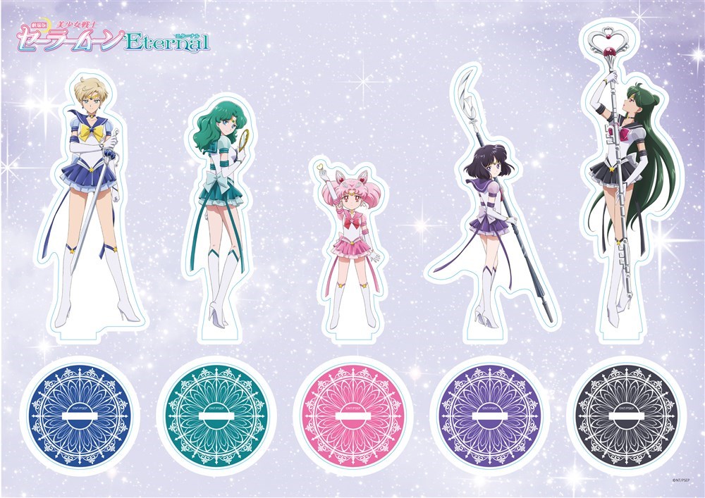 KING RECORDS STORE限定版(数量限定)「アクリルフィギュアセット(エターナルセーラーちびムーン+エターナル外部太陽系4戦士)」は劇場版「美少女戦士セーラームーンEternal」【初回限定版Blu-ray】/【初回限定版DVD】それぞれにエターナルセーラーちびムーン/エターナルセーラーウラヌス/エターナルセーラーネプチューン/エターナルセーラープルート/エターナルセーラーサターンのアクリルフィギュアセットが付いております。 商品詳細 ■初回限定版Blu-ray 形態:Blu-ray2枚組+CD2枚組 ■初回限定版DVD 形態:DVD2枚組+CD2枚組 ■アクリルフィギュアセット ・エターナルセーラーちびムーン ・エターナルセーラーウラヌス ・エターナルセーラーネプチューン ・エターナルセーラープルート ・エターナルセーラーサターン 【収録内容】 [Blu-ray/DVD] ・Disc1劇場版「美少女戦士セーラームーンEternal」《前編》/《後編》 ※音声特典:オーディオコメンタリー 《前編》福圓美里、野島健児 《後編》福圓美里、野島健児、松岡禎丞 ・Disc2 特典映像 「Moon Effect」 オリジナルアニメーションMV 劇場版「美少女戦士セーラームーンEternal」プロモーション映像集 劇場版「美少女戦士セーラームーンEternal」《前編》 公開直前プレミアイベント 劇場版「美少女戦士セーラームーンEternal」《前編》 公開記念アマゾン・トリオナイト! 劇場版「美少女戦士セーラームーンEternal」《後編》完成報告会見 劇場版「美少女戦士セーラームーンEternal」《後編》公開記念舞台あいさつ 今千秋インタビュー 只野和子インタビュー [CD] ・Disc1/2 劇場版「美少女戦士セーラームーンEternal」劇伴集 (「月色Chainon」/「Moon Effect」映画サイズ入り) スペシャルブックレット(大判サイズ:H280mm×W175mm)