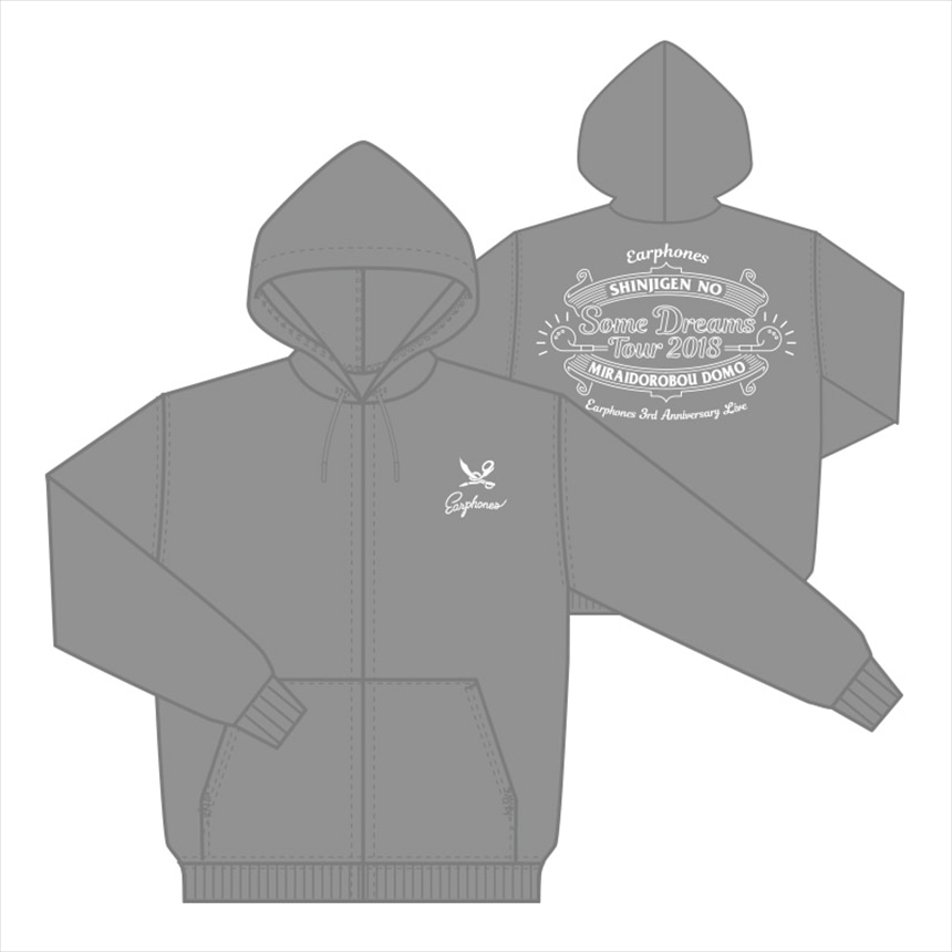 「イヤホンズ 3周年記念LIVE Some Dreams Tour 2018-新次元の未来泥棒ども-」オフィシャルグッズ Sサイズ:身丈64/身幅47/肩幅41/袖丈61cm Mサイズ:身丈67/身幅50/肩幅44/袖丈62cm Lサイズ:身丈70/身幅53/肩幅47/袖丈63cm XLサイズ: 身丈73/身幅56/肩幅50/袖丈63cm