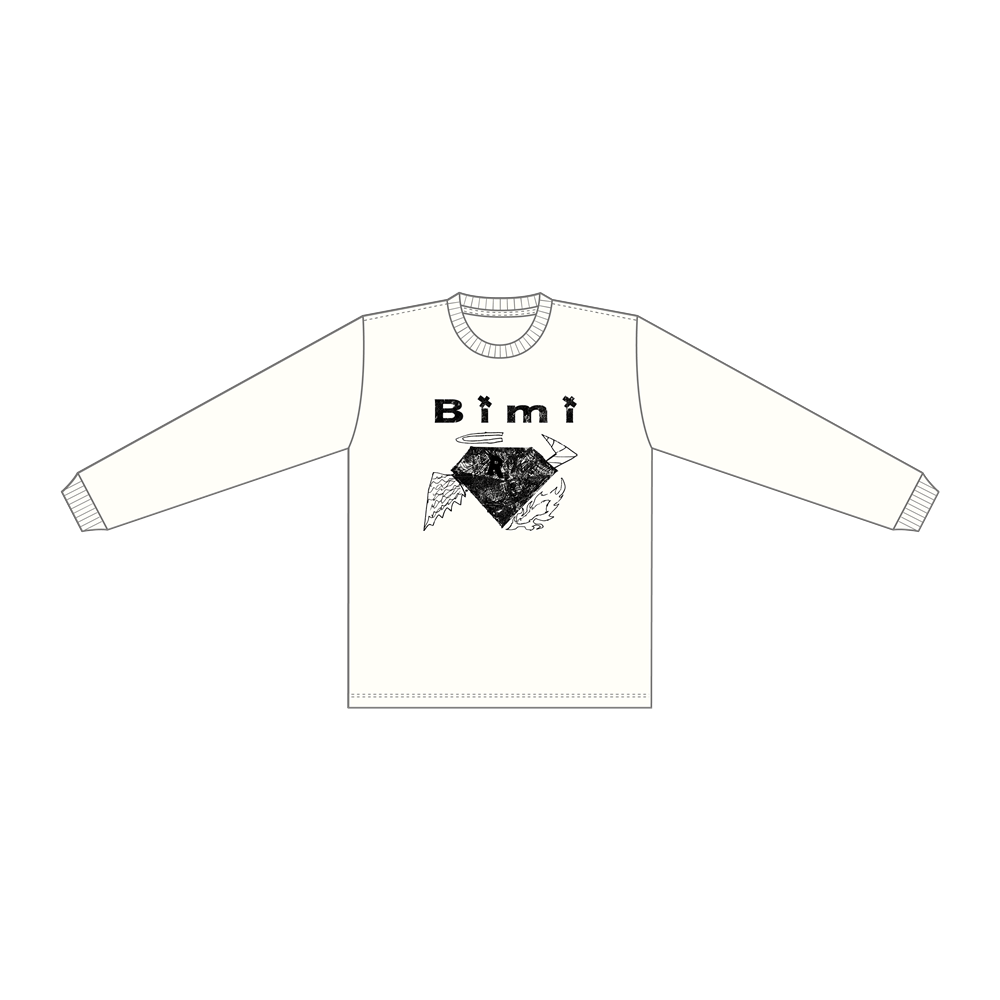 Bimi直筆のイラストを、ビンテージ風にクラッシュプリントしたロングTシャツ。 胸元に「R」部分はラメプリントが重ねて施されています。 サイズ:Lのみ (身丈74/身幅55/肩幅50/袖丈62) ※画像はイメージとなります。実際と異なる場合がございますので予めご了承ください。
