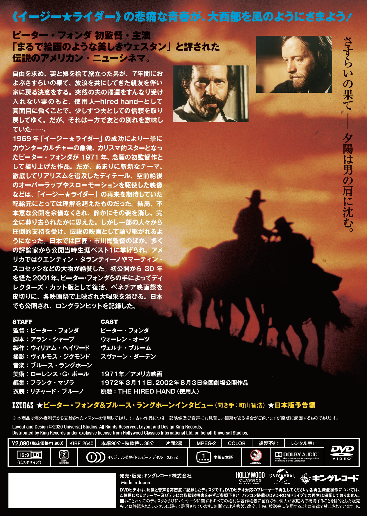 さすらいの果て-夕陽は男の肩に沈む。《イージー★ライダー》の悲痛な青春が大西部を風のようにさまよう!ピーター・フォンダ初監督・主演、伝説のアメリカン・ニューシネマ。