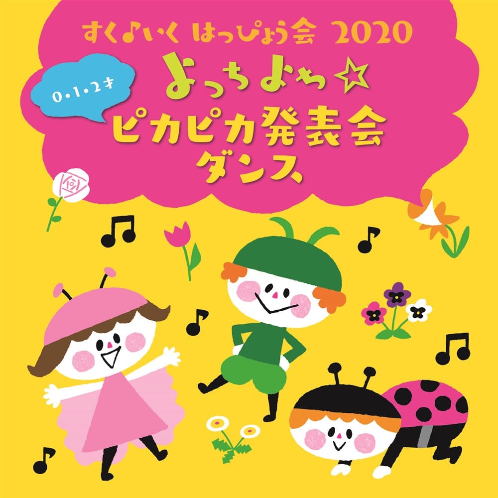 【年少~年長】【0・1・2才】の2タイトル同時発売! ■すく♪いく はっぴょう会 2020【年少~年長】 ドッキドキ☆ぼうけん発表会 ダンス■ 0・1・2才児向け発表会用CD。乳児さんのよちよちのかわいさをぎゅぎゅ~っとクローズアップ!ヒヨコに、ウサギに、ハチにくまのプーさん。テーマに沿った音楽・衣装案で、0才、1才、2才児のそれぞれの月齢の特徴とかわいさをいっそう引き立てます。 <収録曲> 01.【キッズヒット】ぴぴハピー<2:08> 0・1・2才 歌:井上かおり キュートなヒヨコの帽子をかぶり、ほっぺやおしりにタッチ!0才児ははいはいで登場。 02.【キッズヒット】ピカピカウサギのマーチ<3:31> 1・2才 歌:AKI&エンジェル・シスターズ 頭にはうさぎの耳、手にはキラキラのモールをつけて、可愛く陽気にダンス! 03.【キッズヒット】こどもがいっぱいわらってる<2:02> 0才+保護者 歌:たいらいさお、稲村なおこ、タンポポ児童合唱団 ゆったりとした歌に合わせて、ふれあいを楽しめる親子ダンスです! 04.【ディズニー】リーダーにつづけ<2:43> 1・2才 歌:長谷知子&エンジェル・シスターズ 「ピーター・パン」の曲に合わせてジャンプ!ネバーランドを冒険しましょう。 05.【キッズヒット】モウモウ フラダンス<2:18> 1・2才 歌:速水けんたろう、井上かおり ハワイアンなレイを首にかけ、ゆったりとした曲でおしりフリフリフラダンス。 06.【ディズニー】くまのプーさん<2:47> 1・2才 歌:井上かおり くまのプーさんになりきり、音楽に合わせて楽しく踊ります! 07.【キッズヒット】ラ・バンバ<3:07> 0・1・2才+保護者 歌:真園ありす&エンジェル・シスターズ 0・1・2才(全園児もOK)と親子で、ふれあいを楽しむ親子ダンスです。 08.【ディズニー】ゴールデン・アフターヌーン<3:25> 0・1・2才 歌:真園ありす ハチ、チョウチョウ、お花などの色鮮やかなコスチュームも見所のかわいいダンス。 発表会は、ほとんどの園で運動会のあとの最大イベントとして、更に成長した子どもたちの姿が見られます。年長さんはもうすぐ小学1年生だから、しっかりとしてカッコよく見えるように。年中さんは、素敵に楽しく踊れるように。年少さんは、何しろ愛らしく可愛く。そのような発表会のお手伝いに、ぜひこのCDの心地よくかっこ良い音楽を使ってください。そして最後にみんなで「にじ」を歌い発表会を盛り上げてくださいね。