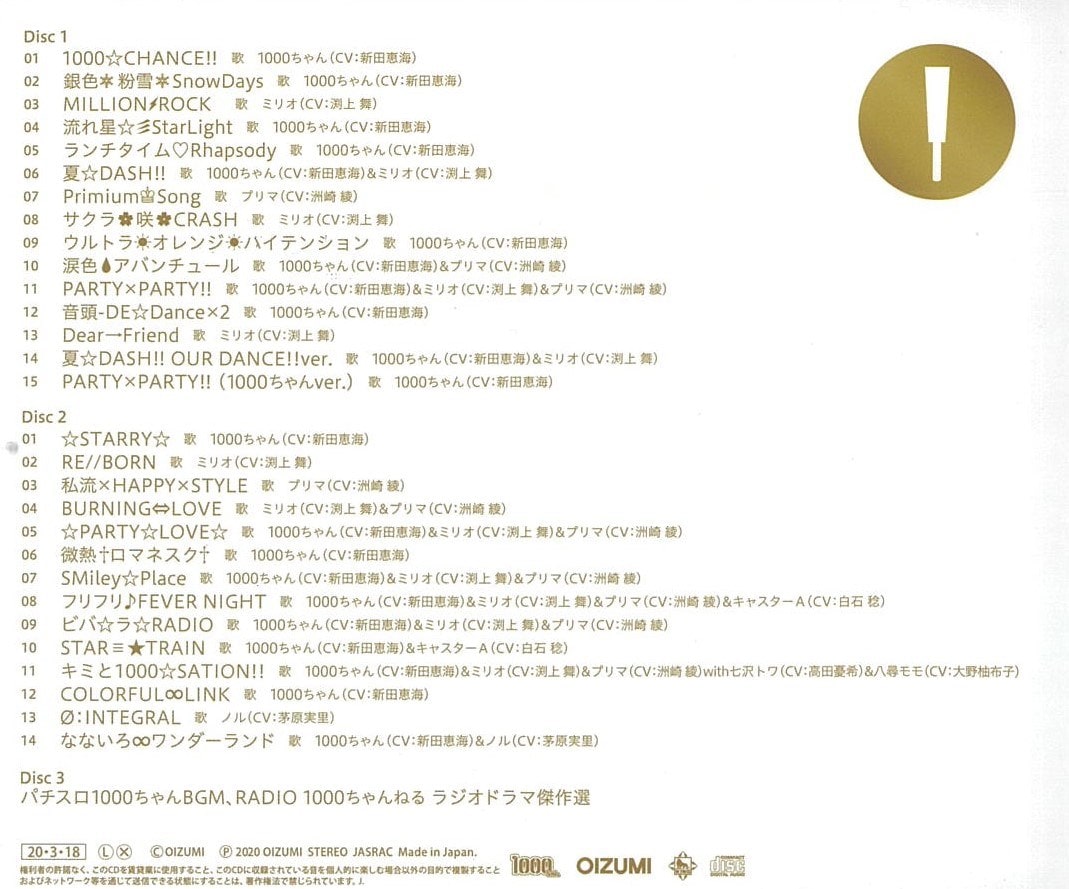 ●2020年遂に念願の「パチスロ1000ちゃん」登場に伴い、これまでの1000ちゃんプロジェクトの全ての楽曲を網羅