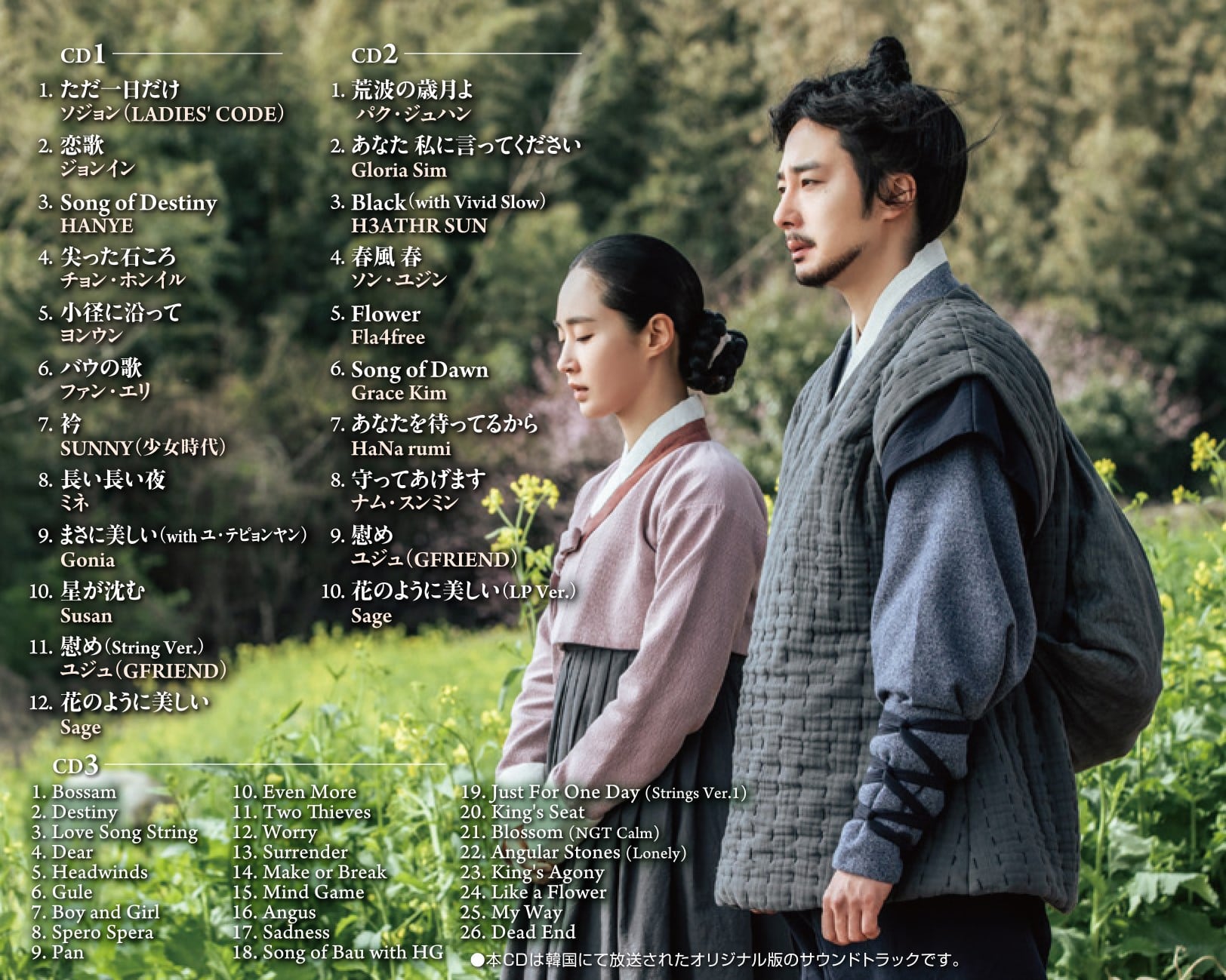 ●ポッサムとは、「布で包む」という意味を持つ韓国語。再婚が法的に認められなかった朝鮮時代に、寡婦を布で包み攫い再婚をさせた風習のことをそう呼んでいました。 ●そのポッサムで生計を立て、男手ひとつで息子を育てるバウ(チョン・イル)が、ある日間違えて翁主[王の側室の娘]スギョン(クォン・ユリ/少女時代)をポッサムしてしまうことがから始まる、フュージョン時代劇。本国では放送の度に視聴率を伸ばした話題作となりました。 ●OSTにはソジョン ( LADIES' CODE )、SUNNY(少女時代)、ユジュ (GFRIEND)らが参加。バージョン違いを含む22曲のヴォーカル曲を収録する他、CD3には名シーンを彩ったBGMを26曲収録しています。 <予定> 日本独自企画[世界初CD化]/フルカラーブックレット ハングル(フリガナ)歌詞・日本語対訳つき <収録曲> CD1 01. ただ一日だけ / ソジョン ( LADIES' CODE ) 02. 恋歌 / ジョンイン 03. Song of Destiny / HANYE 04. 尖った石ころ / チョン・ホンイル 05. 小径に沿って / ヨンウン 06. バウの歌 / ファン・エリ 07. 衿 / SUNNY(少女時代) 08. 長い長い夜 / ミネ 09. まさに美しい (with ユ・テピョンヤン) / Gonia 10. 星が沈む / Susan 11. 慰め (String Ver.) / ユジュ (GFRIEND) 12. 花のように美しい / Sage CD2 01. 荒波の歳月よ / パク・ジュハン 02. あなた 私に言ってください / Gloria Sim 03. Black (with Vivid Slow) / H3ATHR SUN 04. 春風 春 / ソン・ユジン 05. Flower / Fla4free 06. Song of Dawn / Grace Kim 07. あなたを待ってるから / HaNa rumi 08. 守ってあげます / ナム・スンミン 09. 慰め / ユジュ (GFRIEND) 10. 花のように美しい (LP Ver.) / Sage CD3 01. Bossam 02. Destiny 03. Love Song String 04. Dear 05. Headwinds 06. Gule 07. Boy and Girl 08. Spero Spera 09. Pan 10. Even More 11. Two Thieves 12. Worry 13. Surrender 14. Make or Break 15. Mind Game 16. Angus 17. Sadness 18. Song of Bau with HG 19. Just For One Day (Strings ver.1) 20. King's Seat 21. Blossom (NGT Calm) 22. Angular Stones (Lonely) 23. King's Agony 24. Like a Flower 25. My Way 26. Dead End ※本CDは韓国にて放送されたオリジナル版のサウンドトラックです。 曲目表記、収録内容は変更になる場合がございます。