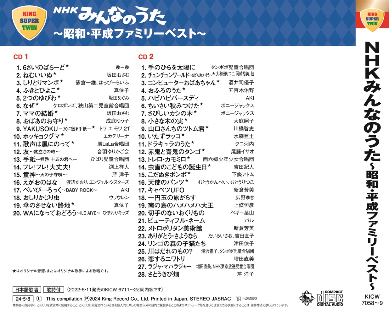 NHKみんなのうた~昭和・平成ファミリーベスト~ キング・スーパー・ツイン・シリーズ 2024
