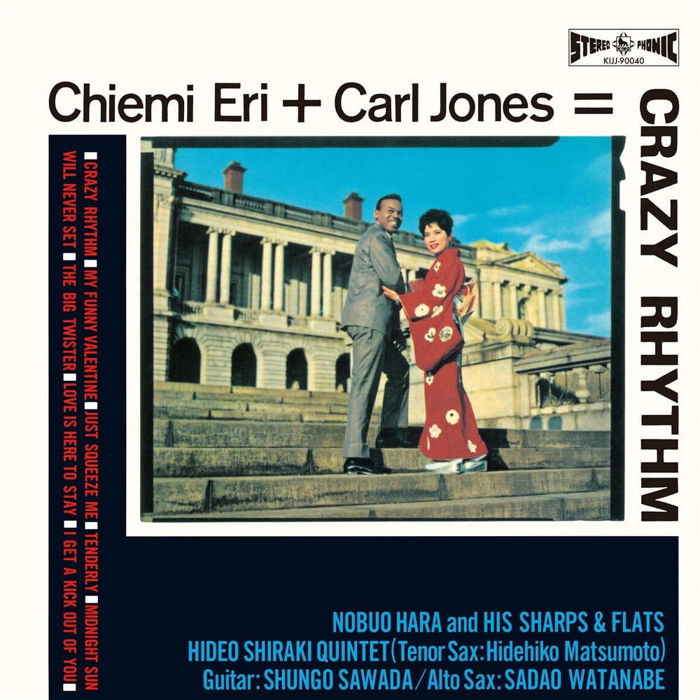 《A面》①クレイジー・リズム/②マイ・ファニー・ヴァレンタイン/③ジャスト・スクイーズ・ミー/④テンダリー 《B面》①つむじ風のブルース/②ミッドナイト・サン・ウィル・ネヴァー・セット/③ラヴ・イズ・ヒア・トゥ・ステイ/④アイ・ゲット・ア・キック・アウト・オヴ・ユー [ヴォーカル] 江利チエミ、カール・ジョーンズ [演奏] 渡辺貞夫(as)/松本英彦(ts)/沢田駿吾(g)/ 白木秀雄クインテット/原信夫とシャープス&フラッツ カール・ジョーンズとのコラボレーション・アルバム第2弾。渡辺貞夫、白木秀雄、シャープス&フラッツ等、演奏陣も豪華!