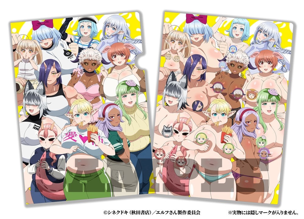 「エルフさんは痩せられない。」Blu-ray BOX【初回生産限定版】を対象期間内にご購入(またはご予約)いただくと抽選で下記景品をプレゼント! ■景品 ○「メインキャスト寄せ書きサイン入りアフレコ台本」1名様 (絵留札役:伊藤彩沙、直江友厚役:石井孝英、黒枝役:長谷川玲奈、男鹿役:福原綾香、草花田役:久保田未夢、米路役:徳井青空、頼加役:朝日奈丸佳、奥・猪野明穂役:内田彩、児穂役:小岩井ことり、佐手呂役:井口裕香、骨田役:前田佳織里、含蛇役:島田愛野、一目役:佐々木未来) ○デカ缶バッジ 2名様