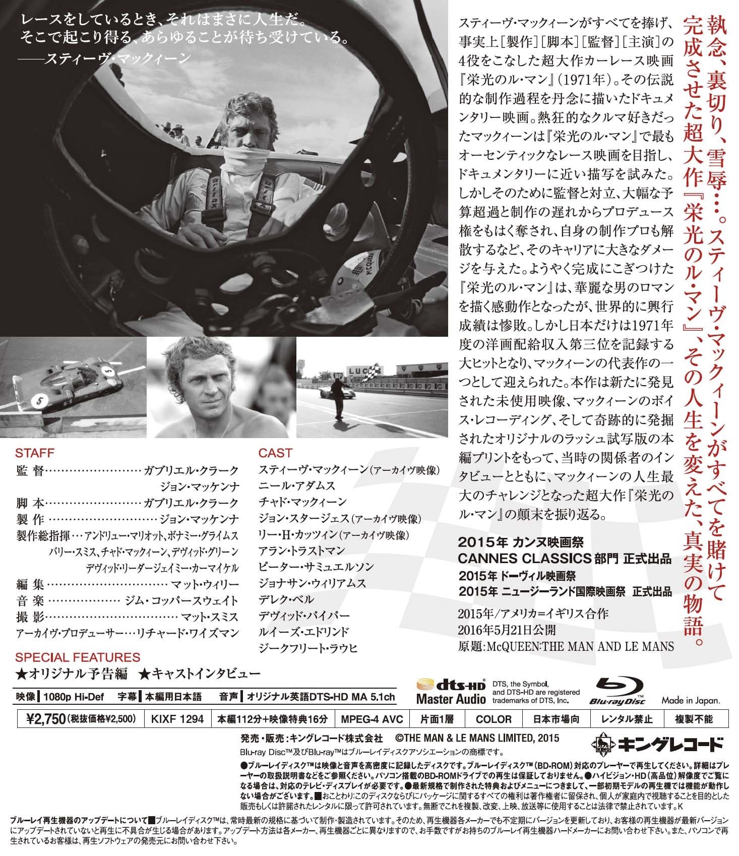 大スター、スティーヴ・マックィーンがすべてを賭けて完成させた歴史的超大作 『栄光のル・マン』の顛末、そしてその人生を変えた、真実の物語。