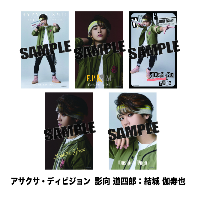 販売期間:2026年03月27日(金)12:00~2026年4月19日(日)23:59 【内容】 サイズ:55×89mm 内容:ミニブロマイド5枚組 ※ソロブロマイド⑨(アサクサ・ディビジョン 影向 道四郎:結城 伽寿也)と同じカットを含みます。 ※販売期間がございますのでご注意の上、お早めにお買い求め下さい。